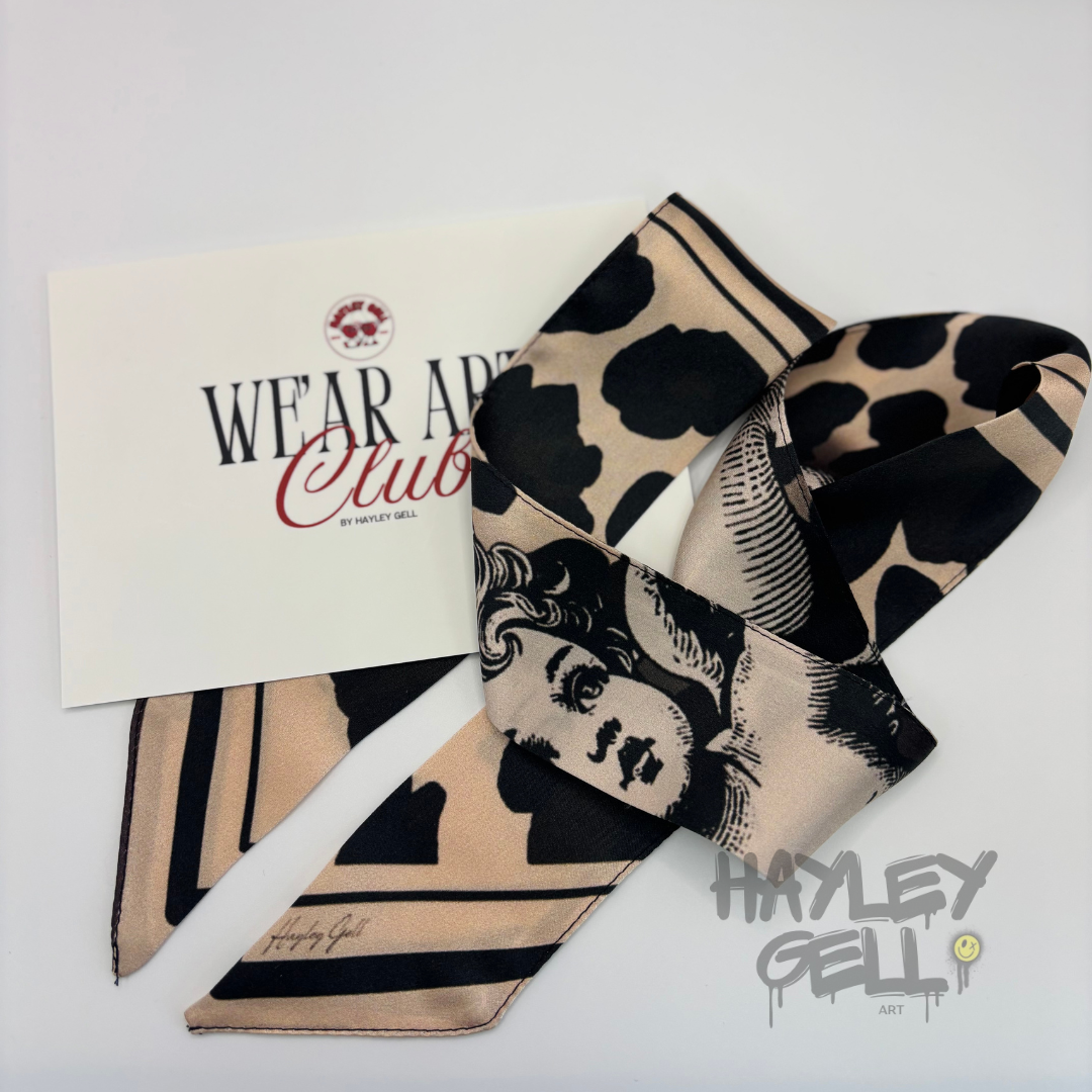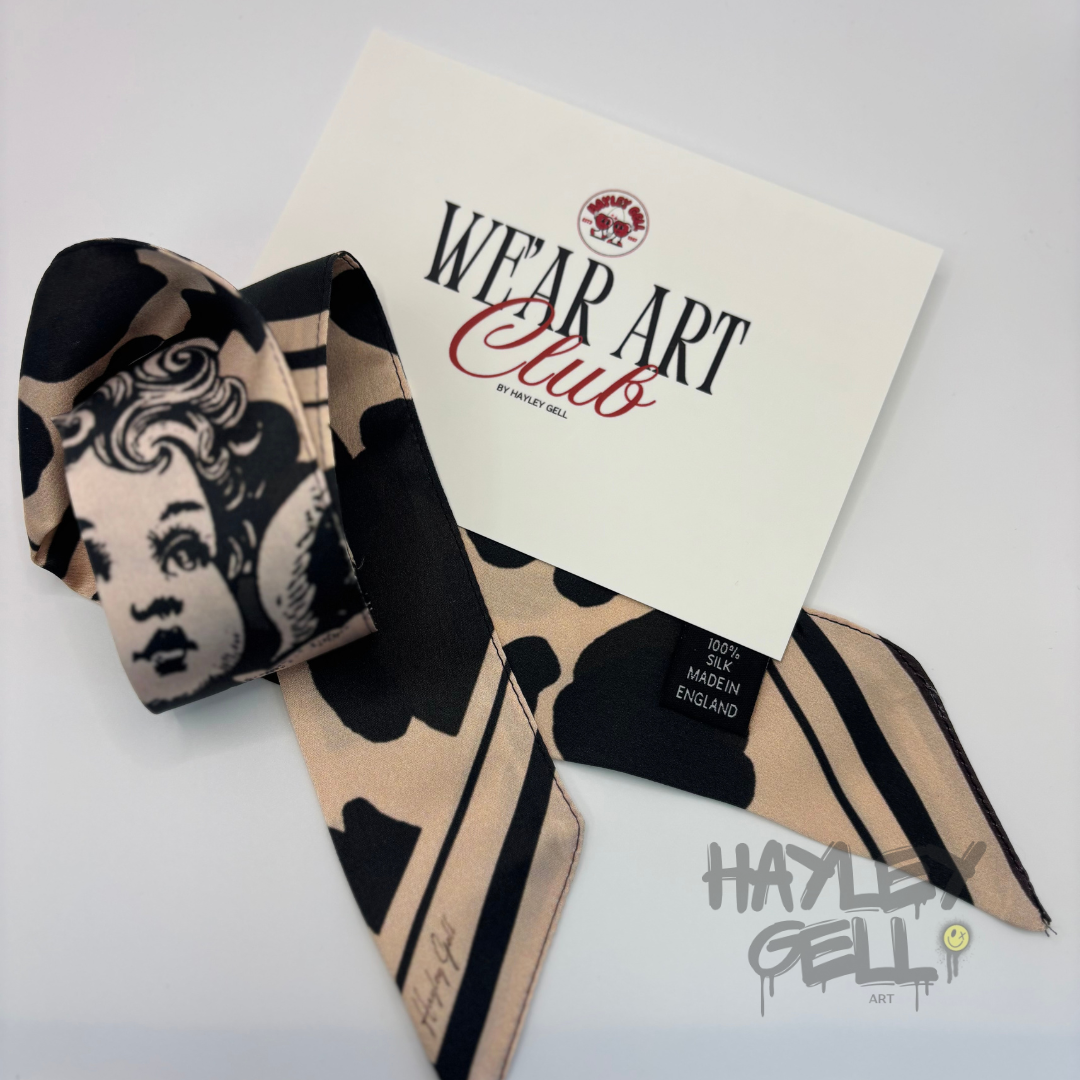 Each We’Ar Art Twilly is crafted from luxurious 100% silk, featuring original artwork designed by Hayley Gell.