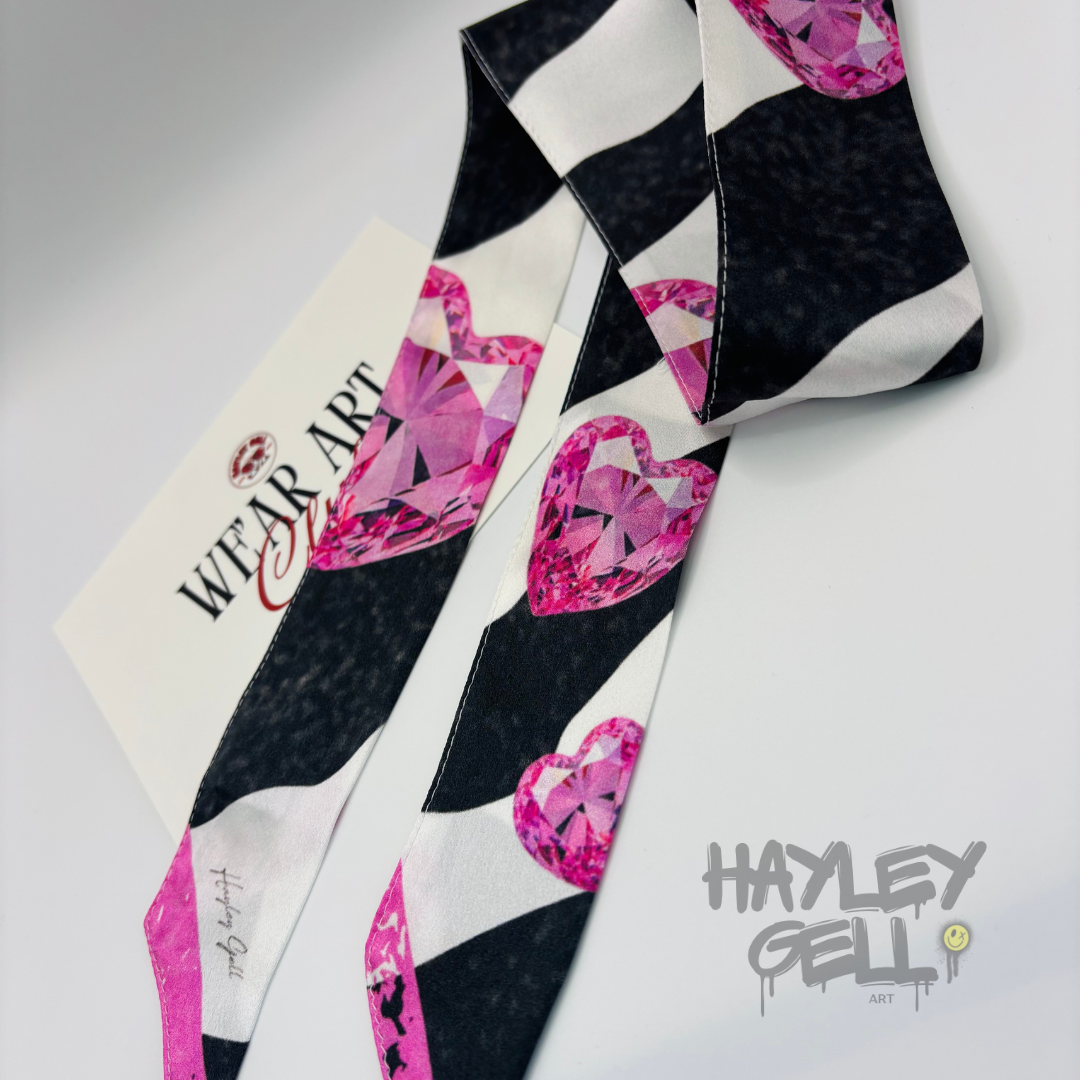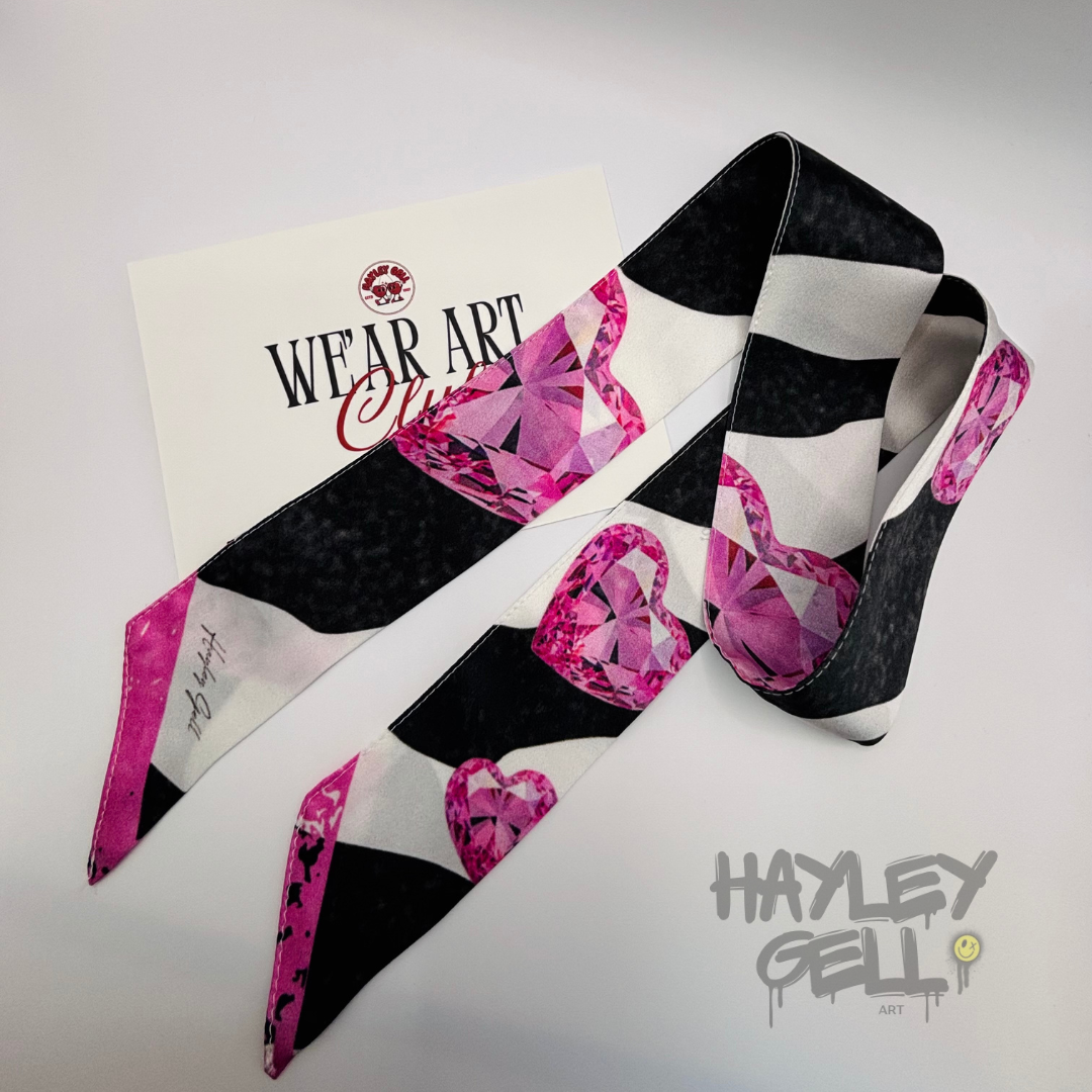 Each We’Ar Art Twilly is crafted from luxurious 100% silk, featuring original artwork designed by Hayley Gell.