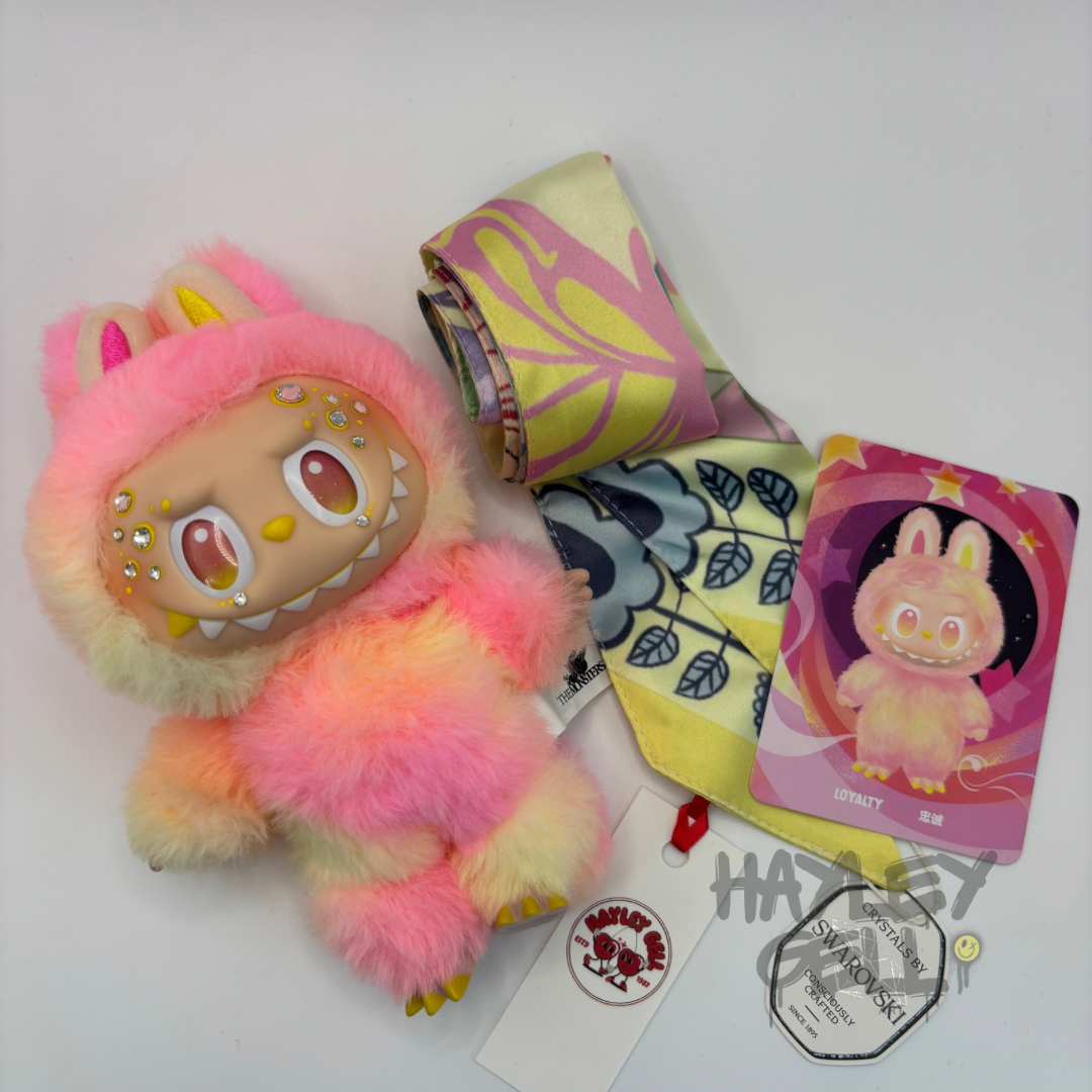 Collaboration with We’ar Art — each Labubu comes with a complementing Hayley Gell art Twilly.