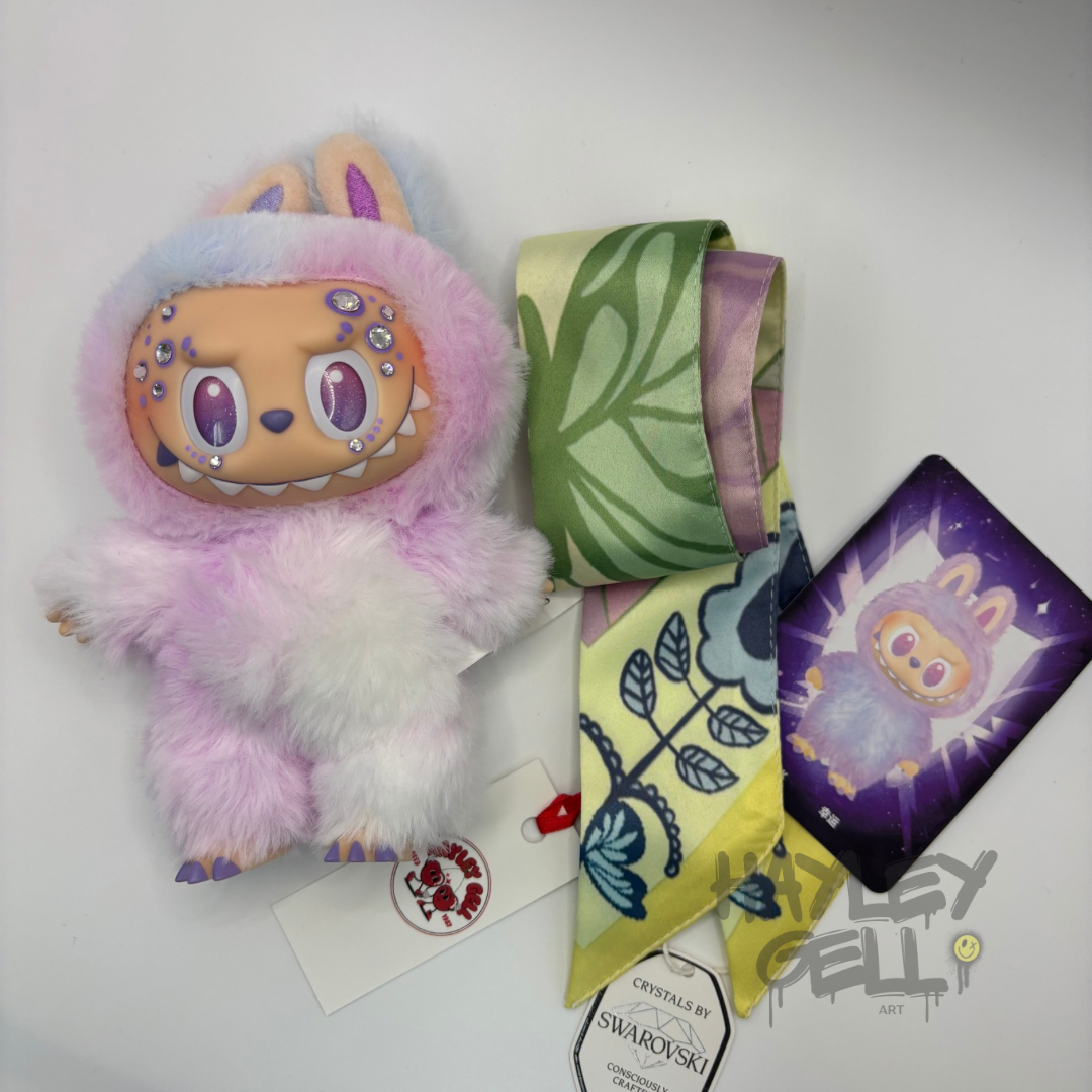 Collaboration with We’ar Art — each Labubu comes with a complementing Hayley Gell art Twilly.