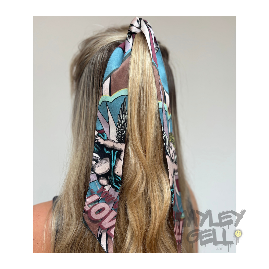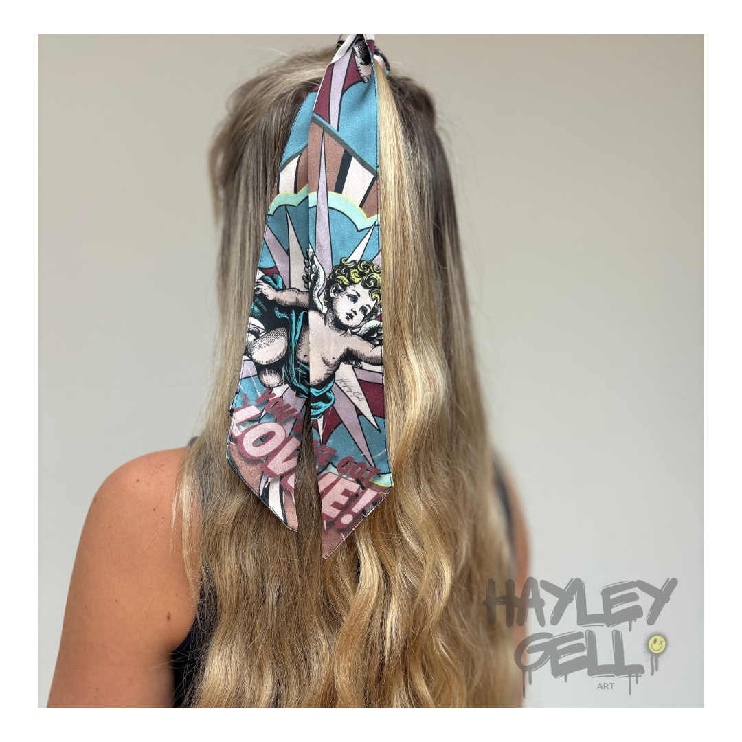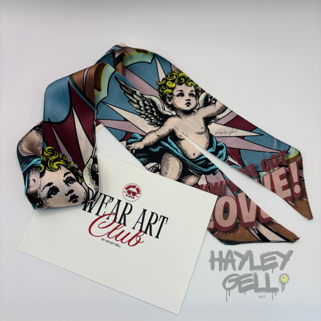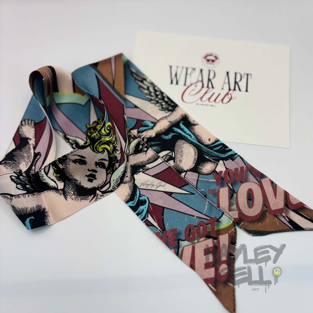 Each We’Ar Art Twilly is crafted from luxurious 100% silk, featuring original artwork designed by Hayley Gell.