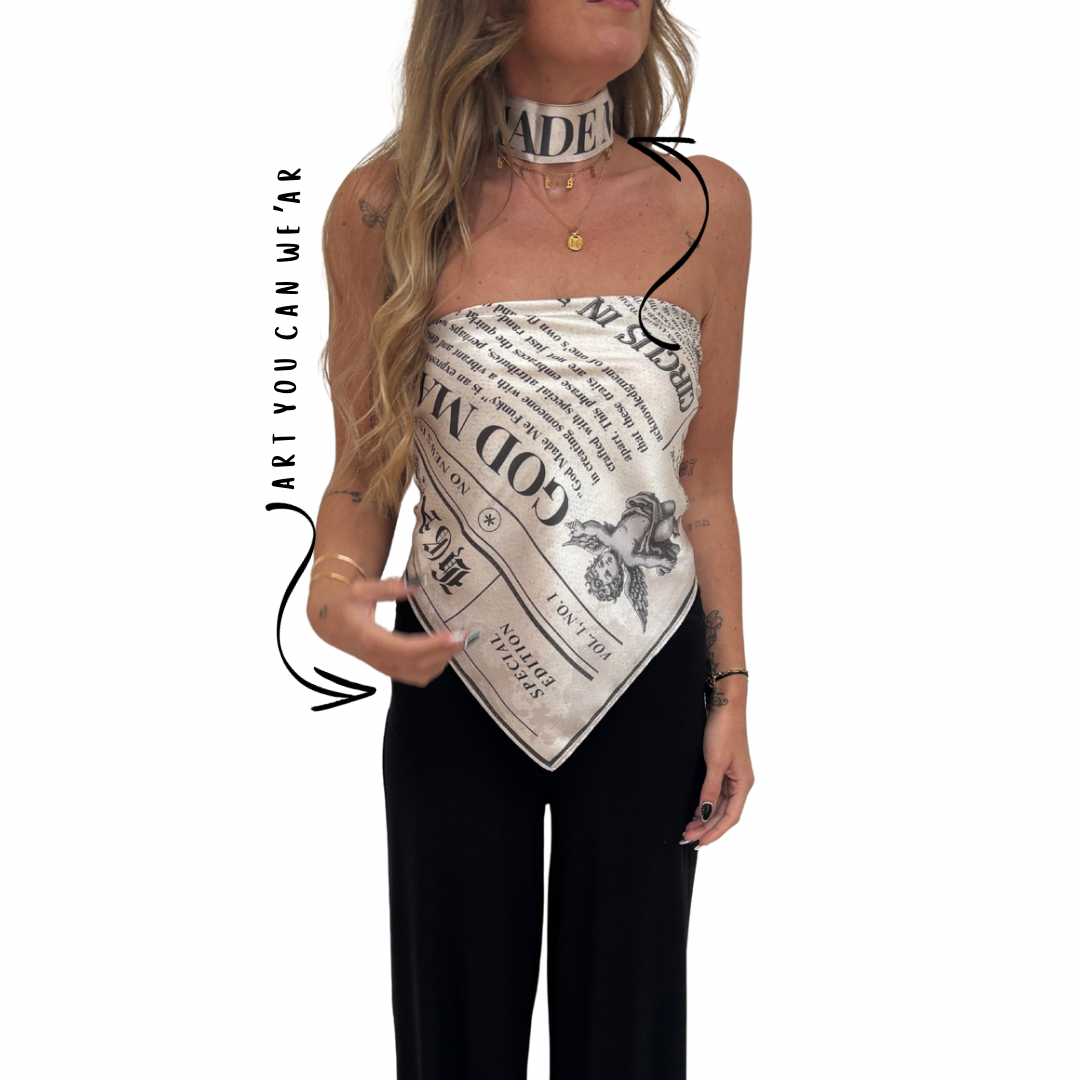 Designed for statement styling — wear as a top, drape as a scarf, or frame as a striking larger artwork.